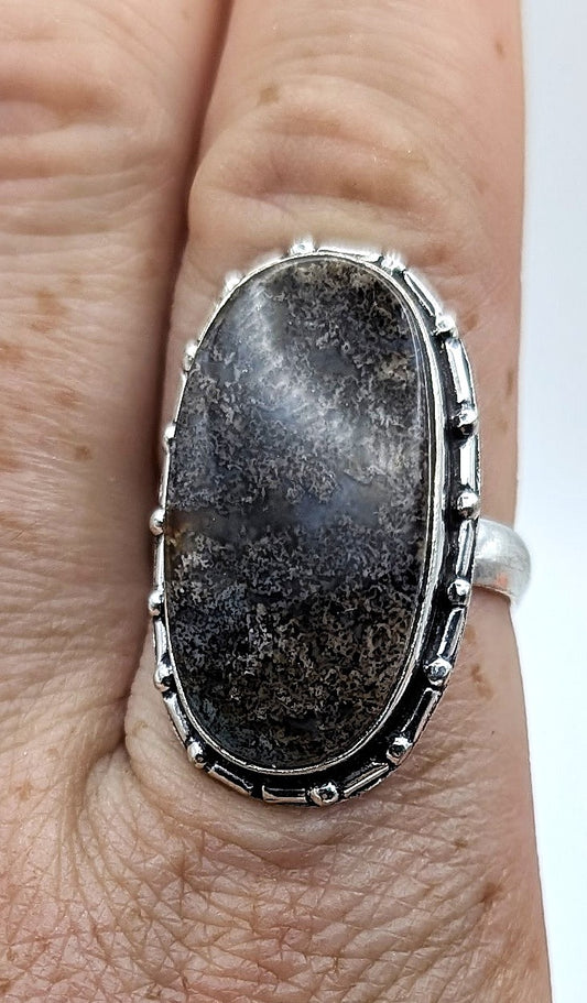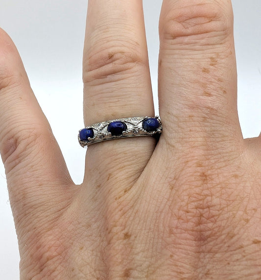 Ring Lapis Lazuli Band Silver Color Plated Adjustable