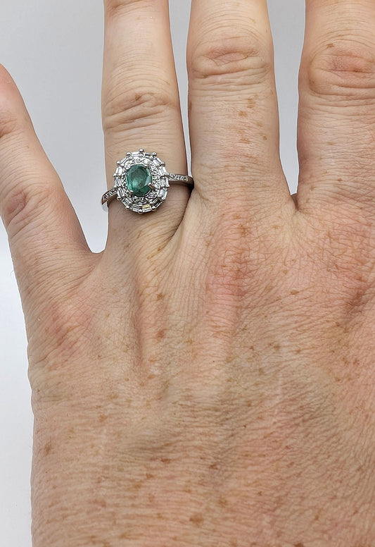 Ring Green Chalcedony with White Accent Stones Sterling Silver