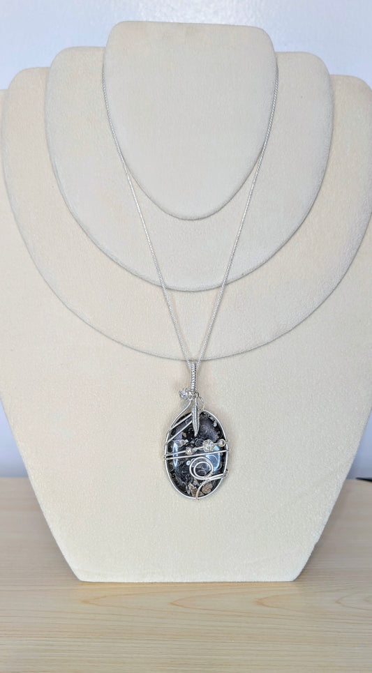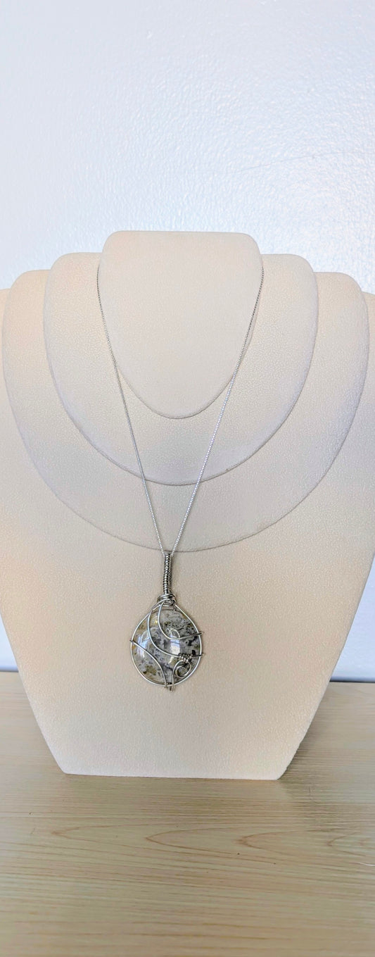 Turritella Agate Cabochon *Sterling Silver* Necklace