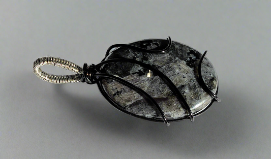 *Black Tourmaline Cabochon Necklace *Unplated Copper*