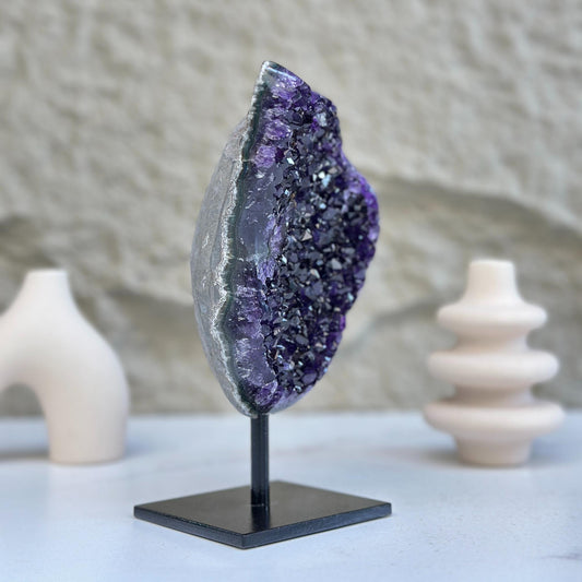 Natural Amethyst Geode, Galaxy Crystal on Metal Stand