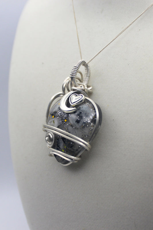 Sterling Silver Resin Moonstone Heart Pendant Necklace