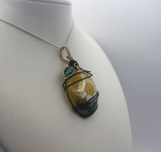 Gold Resin Amazonite Dried Flower Pendant Necklace