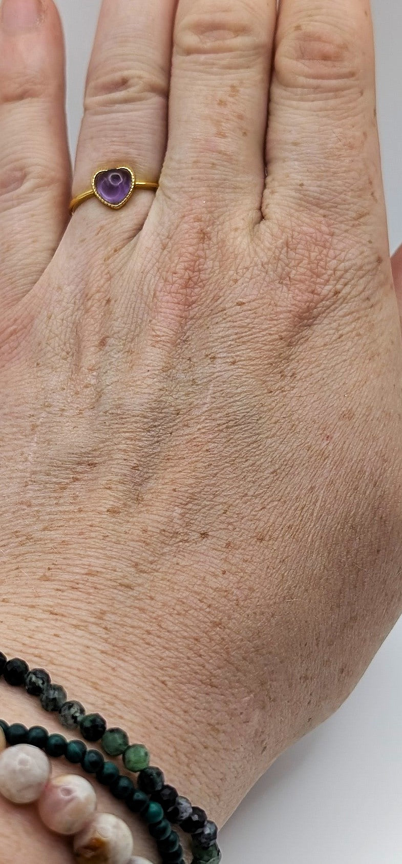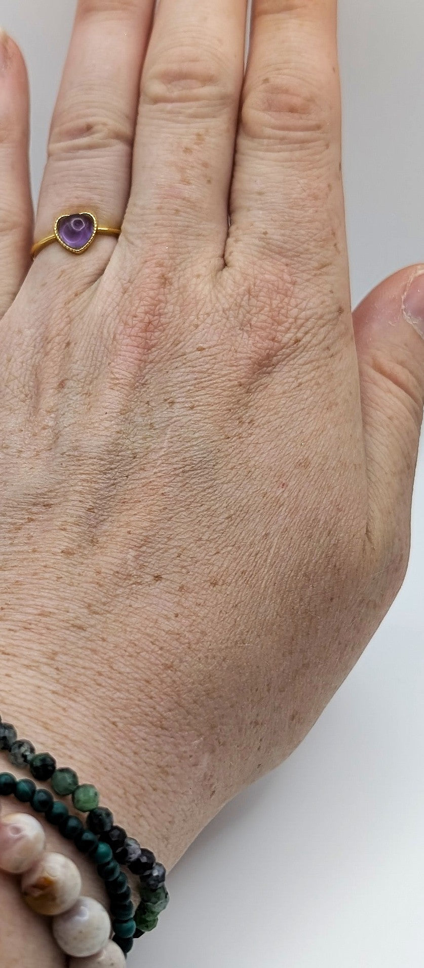 Ring Amethyst Heart Gold Color Sterling Silver Adjustable