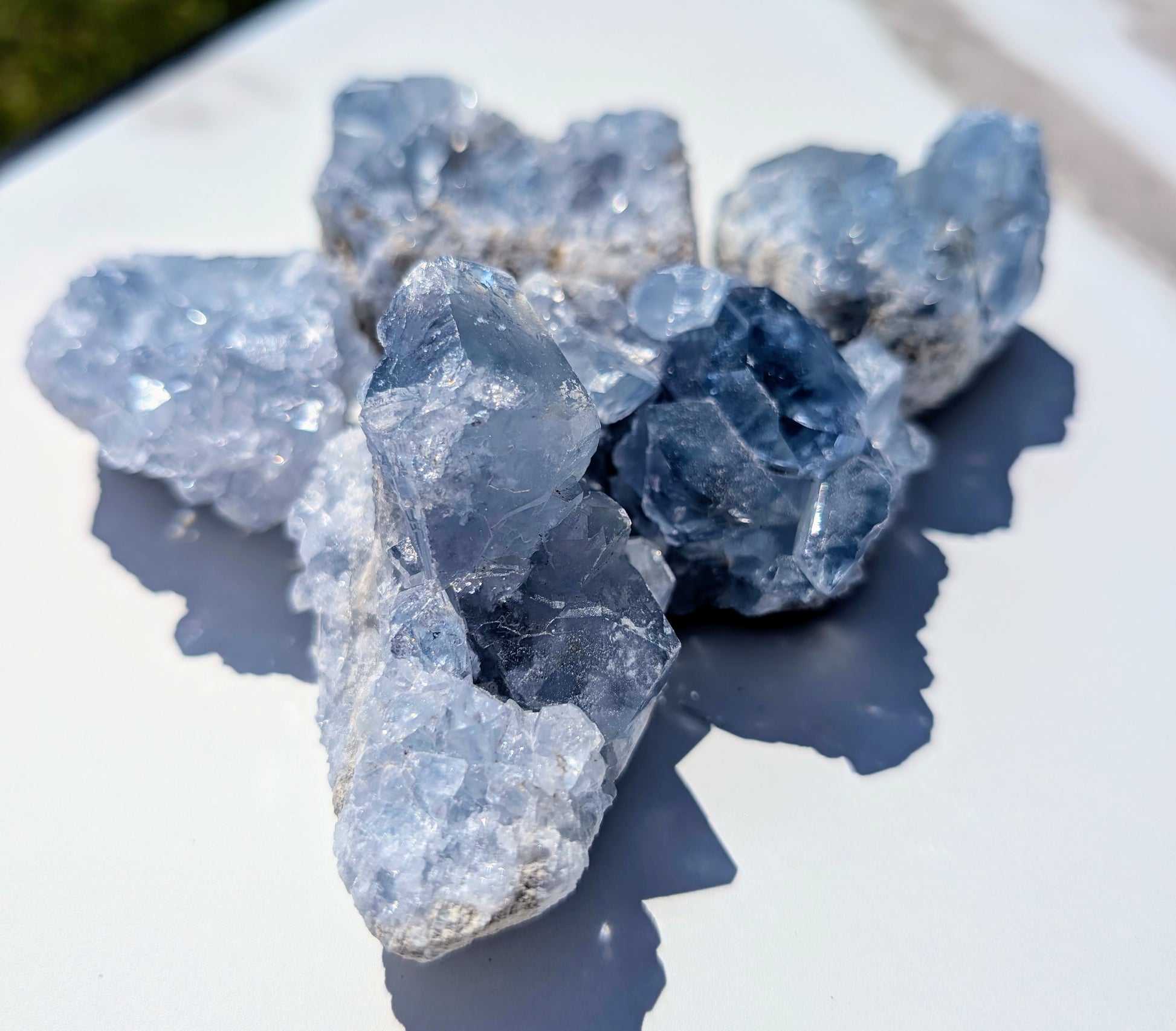 Whispers of the heavens, captured in crystal form. These dreamy blue Celestite clusters radiate gentle, calming energy—like a deep breath for your soul.