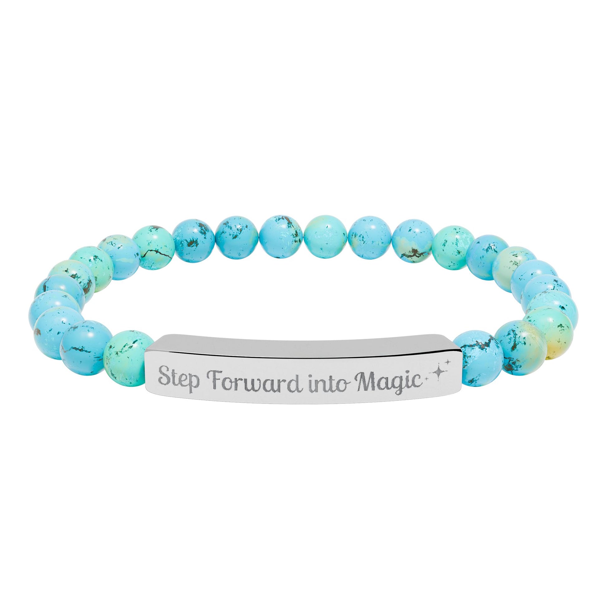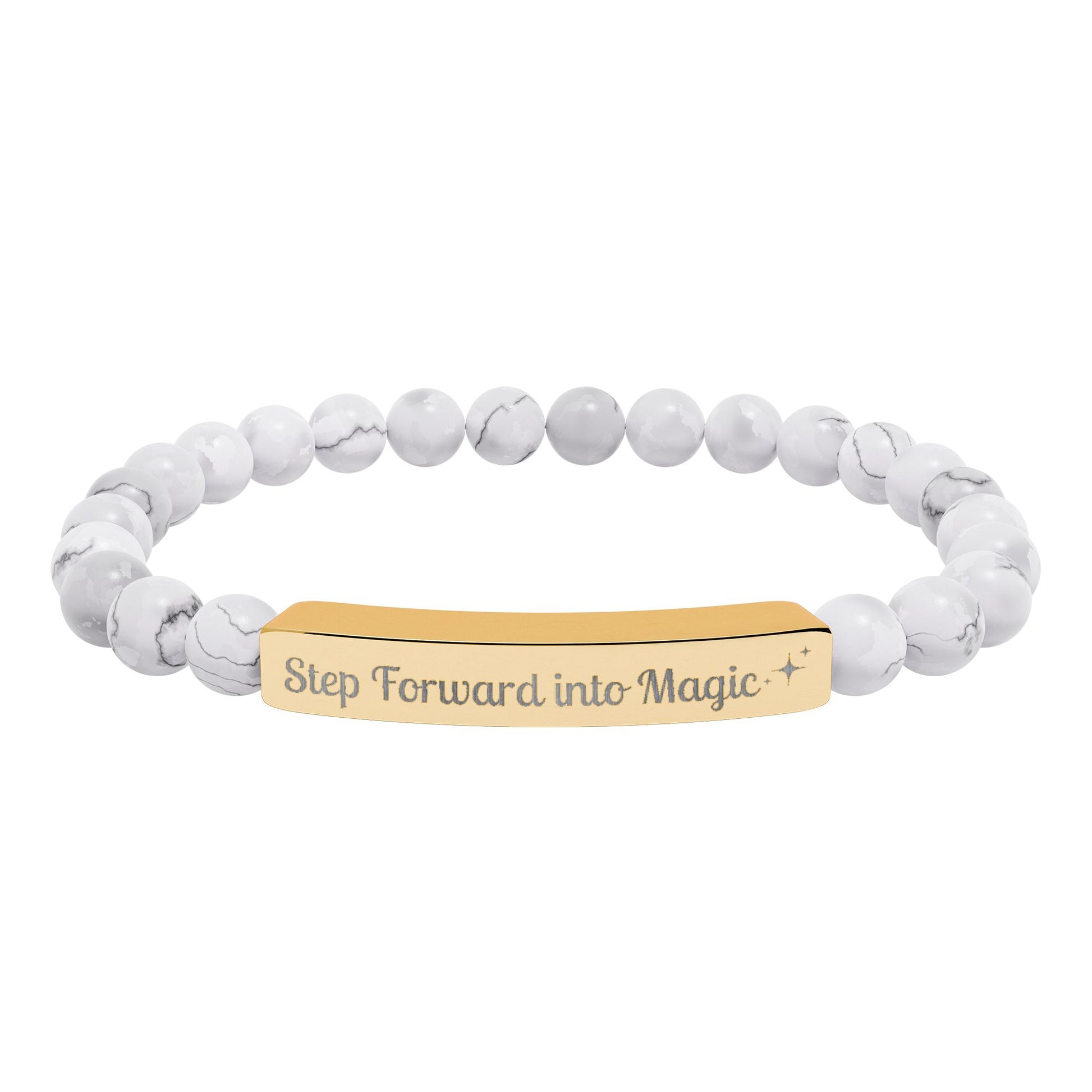 Engraved Natural Stone Stretch Bar Bracelet — "Step Forward into Magic" Motivational Beaded Bracelet