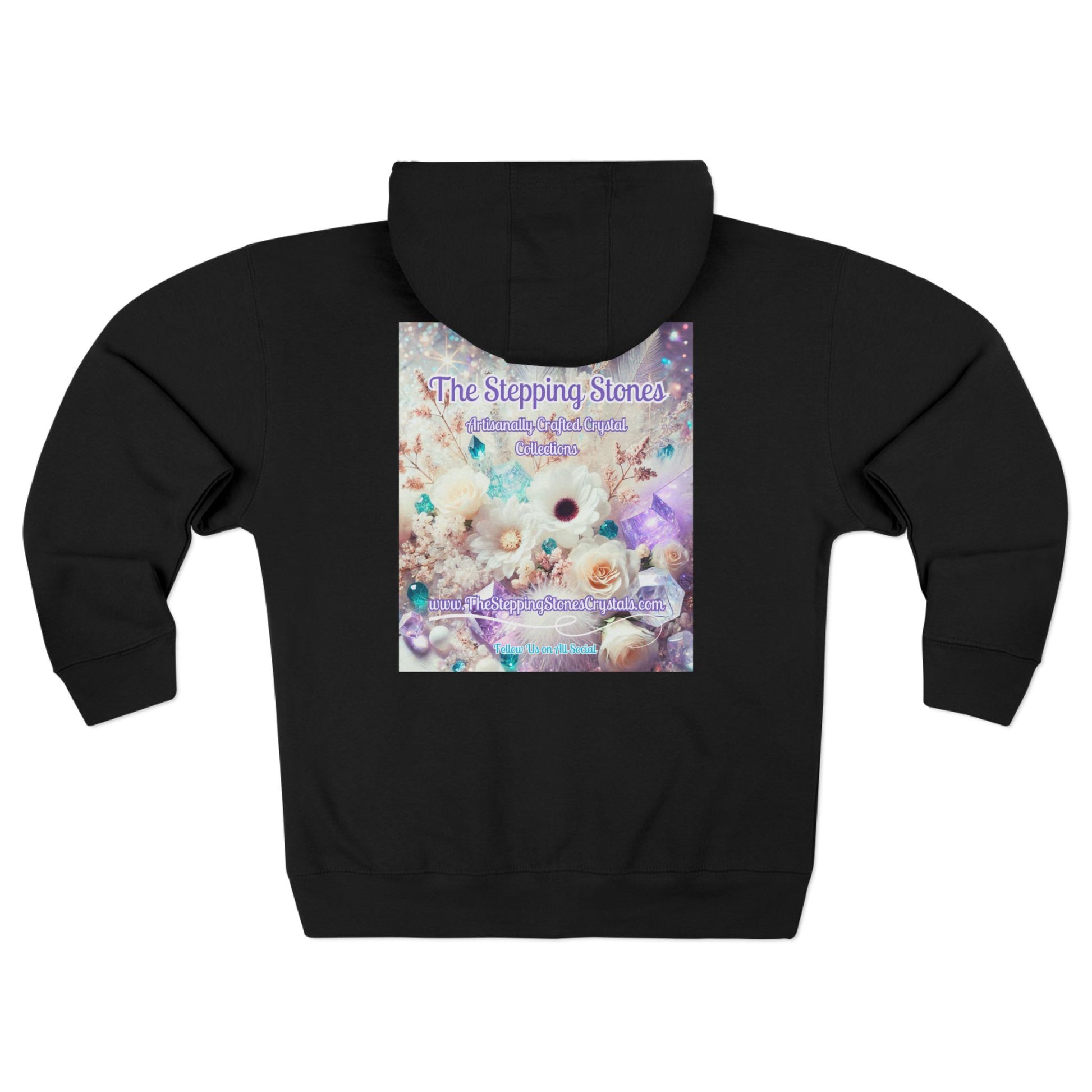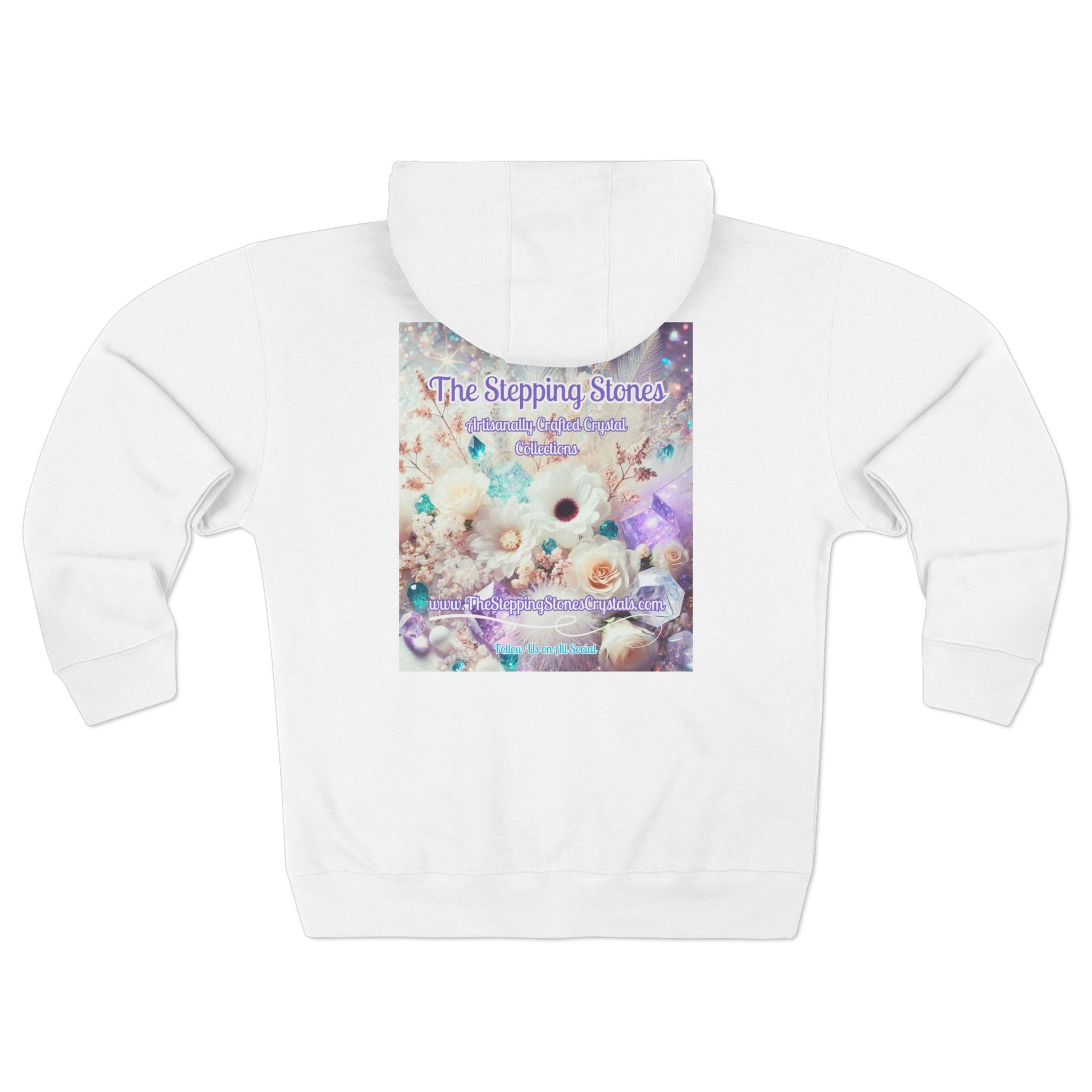 Perfect for crisp mornings, stargazing nights, or simply stepping into your everyday adventures, this hoodie features a beautifully intricate floral design that whispers of nature’s grace and crystal magic.