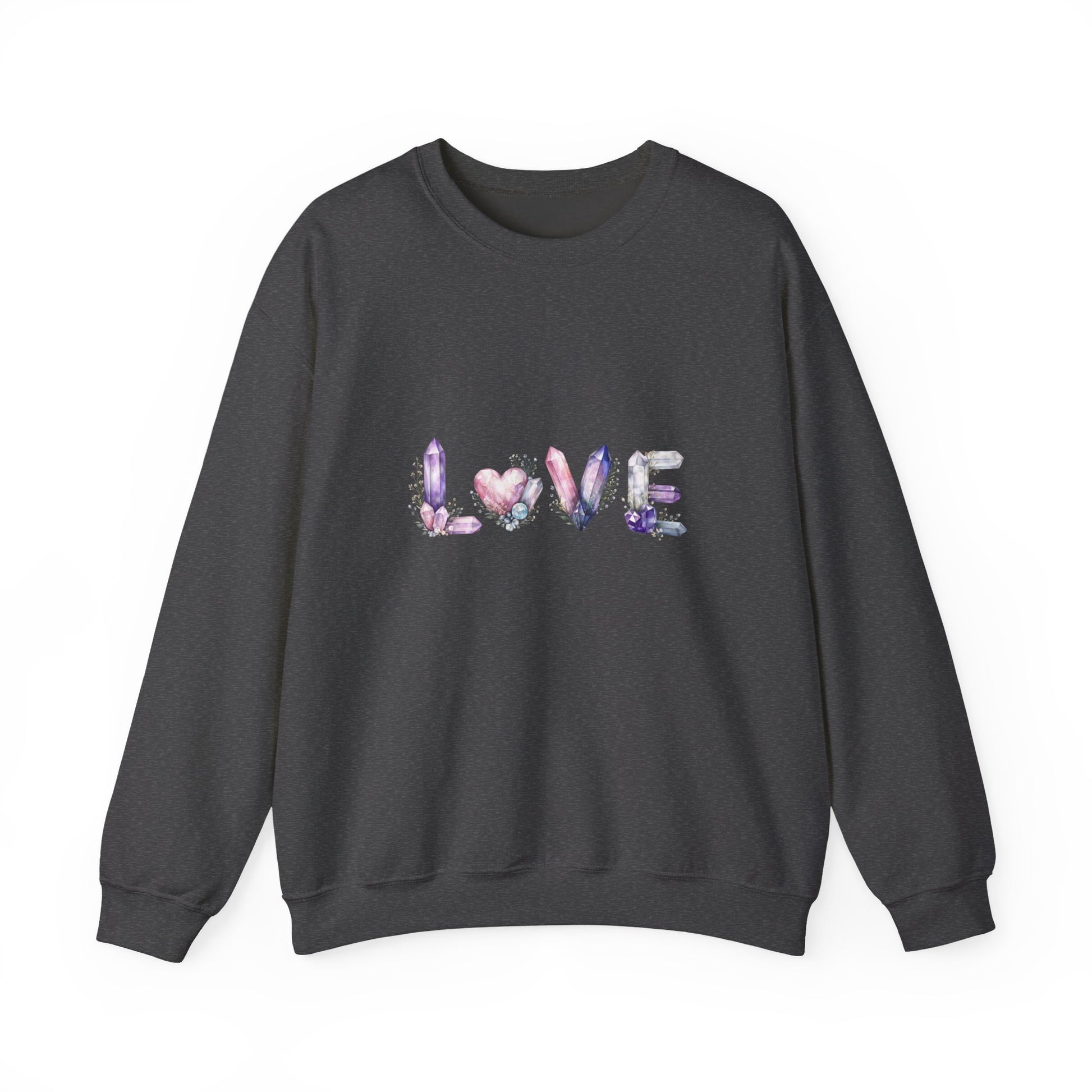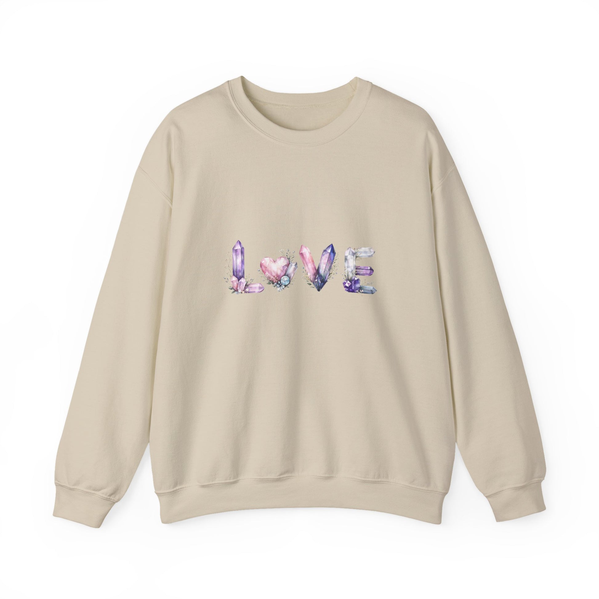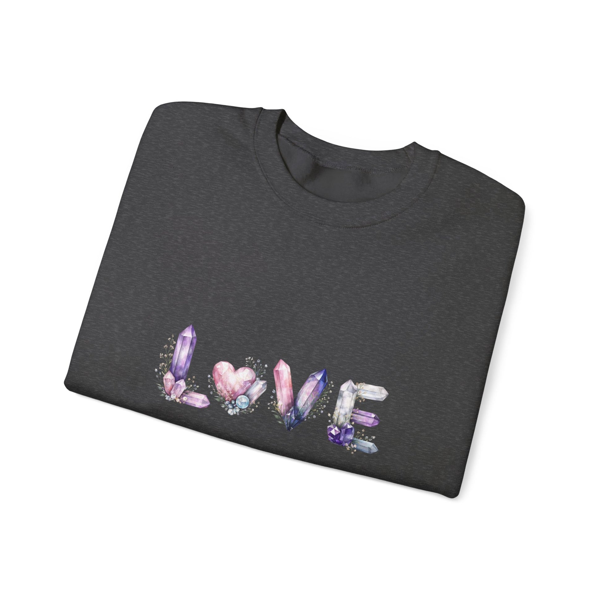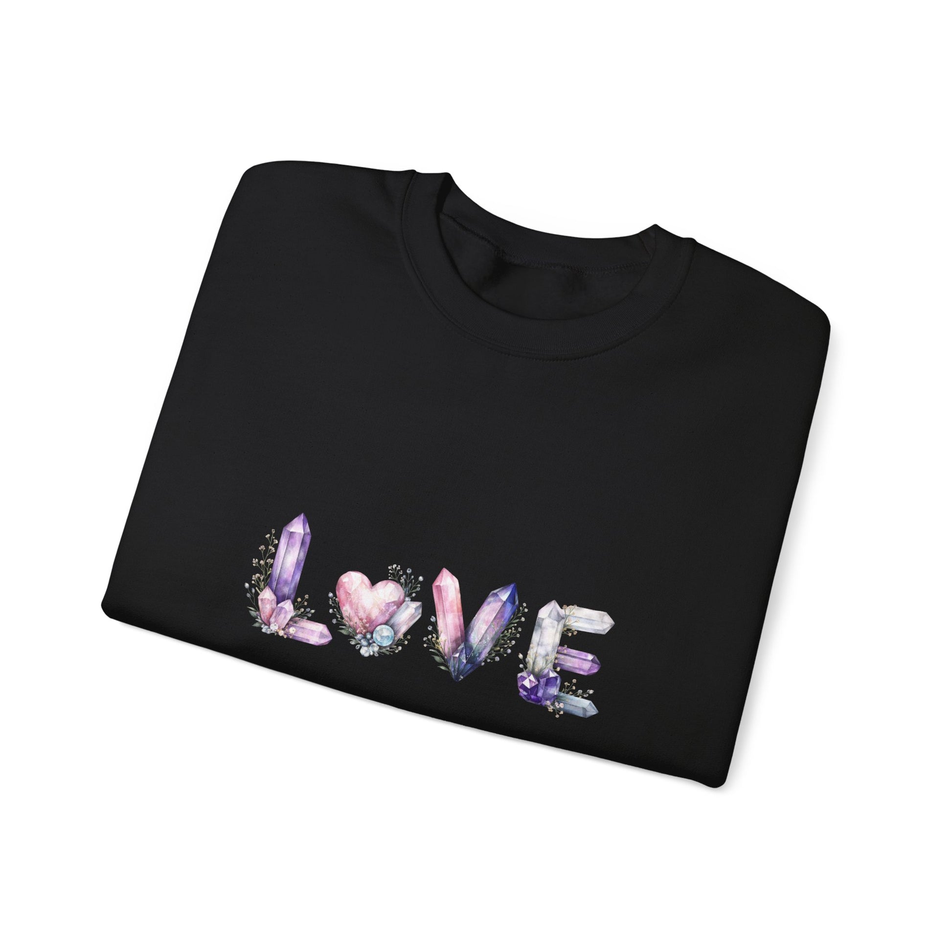 This design blends softness and strength into a single, intentional statement. The word LOVE is formed entirely from luminous crystals — grounded, radiant, and quietly powerful — creating a look that feels both elevated and wearable. It’s romantic without being loud, mystical without being overdone.