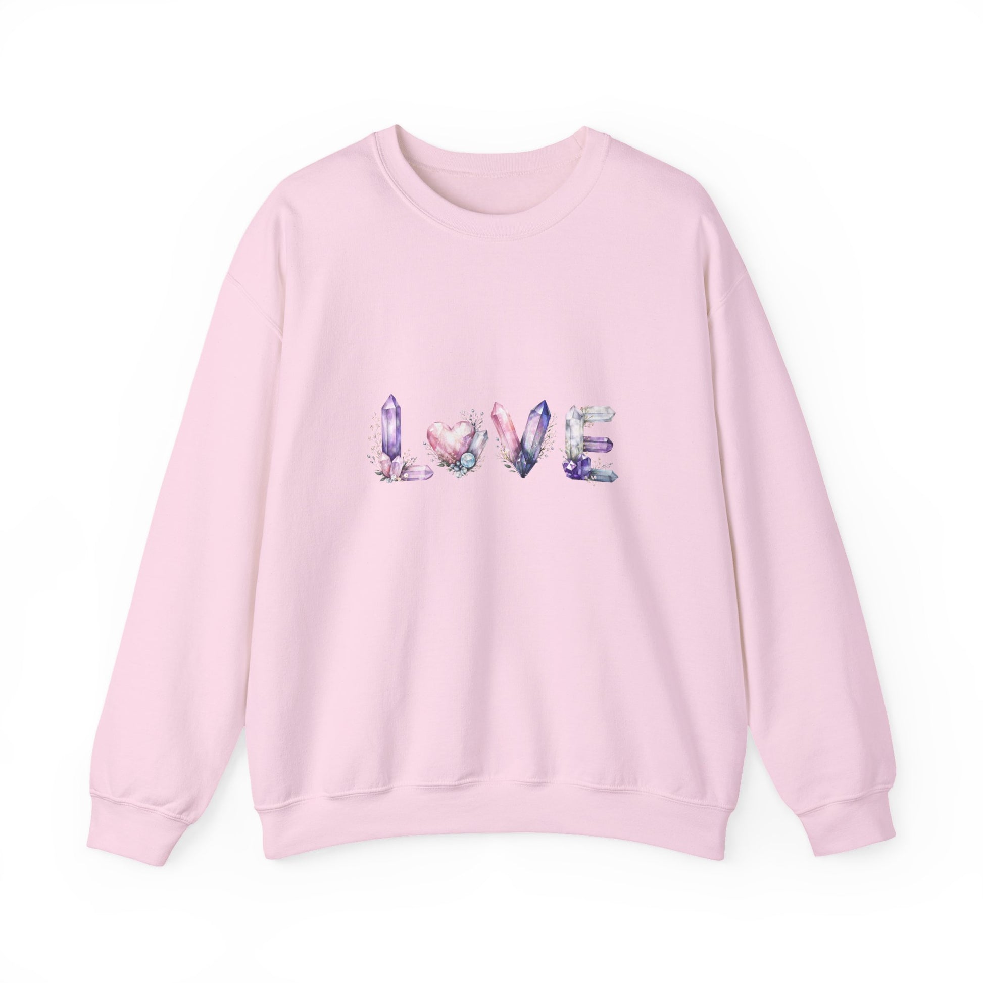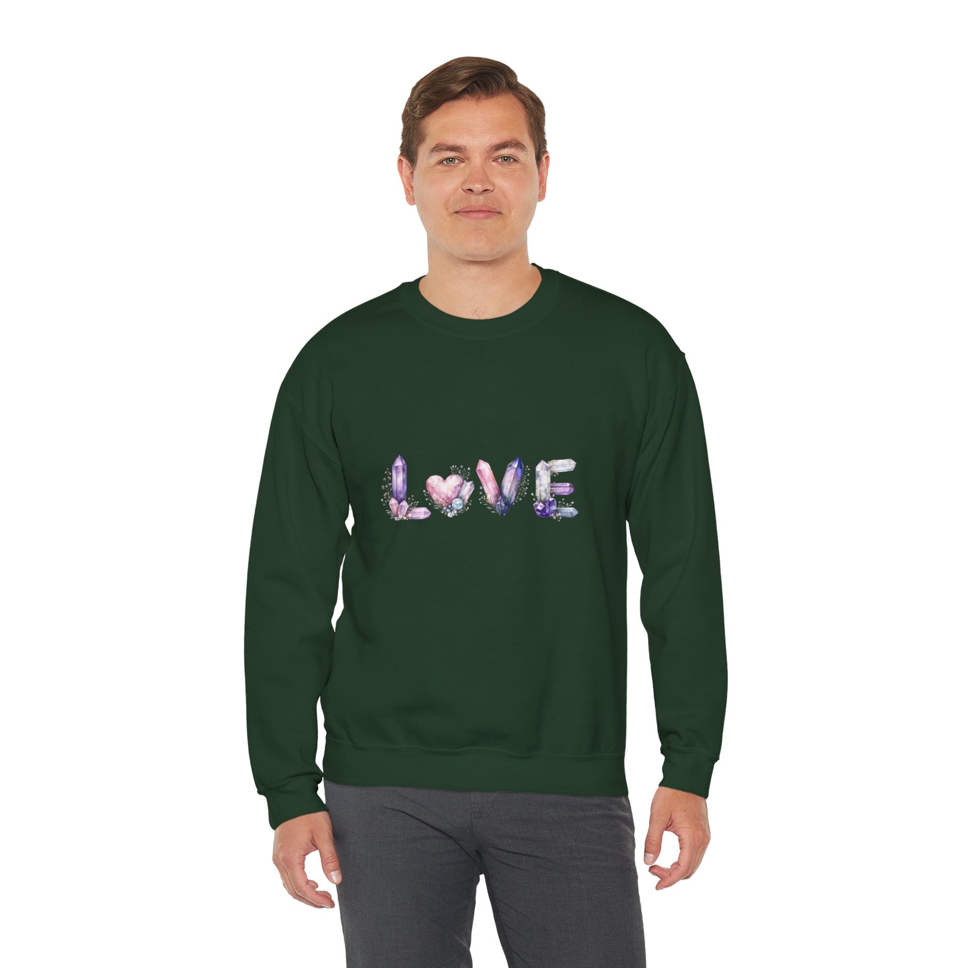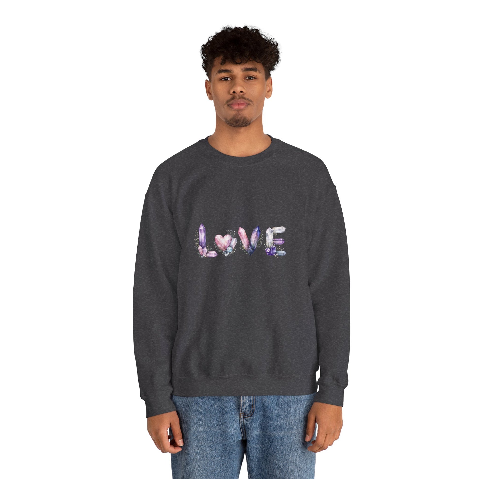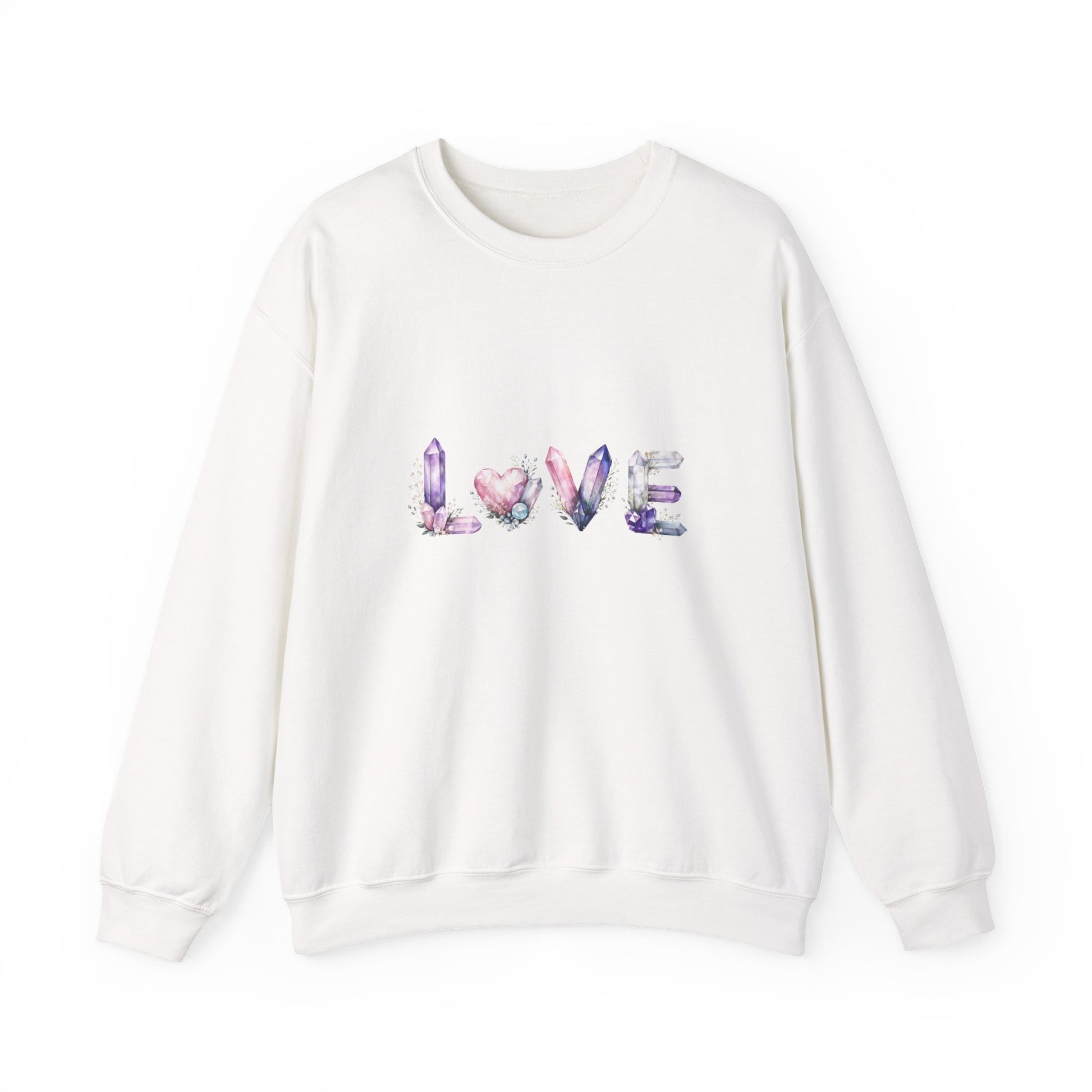 This design blends softness and strength into a single, intentional statement. The word LOVE is formed entirely from luminous crystals — grounded, radiant, and quietly powerful — creating a look that feels both elevated and wearable. It’s romantic without being loud, mystical without being overdone.
