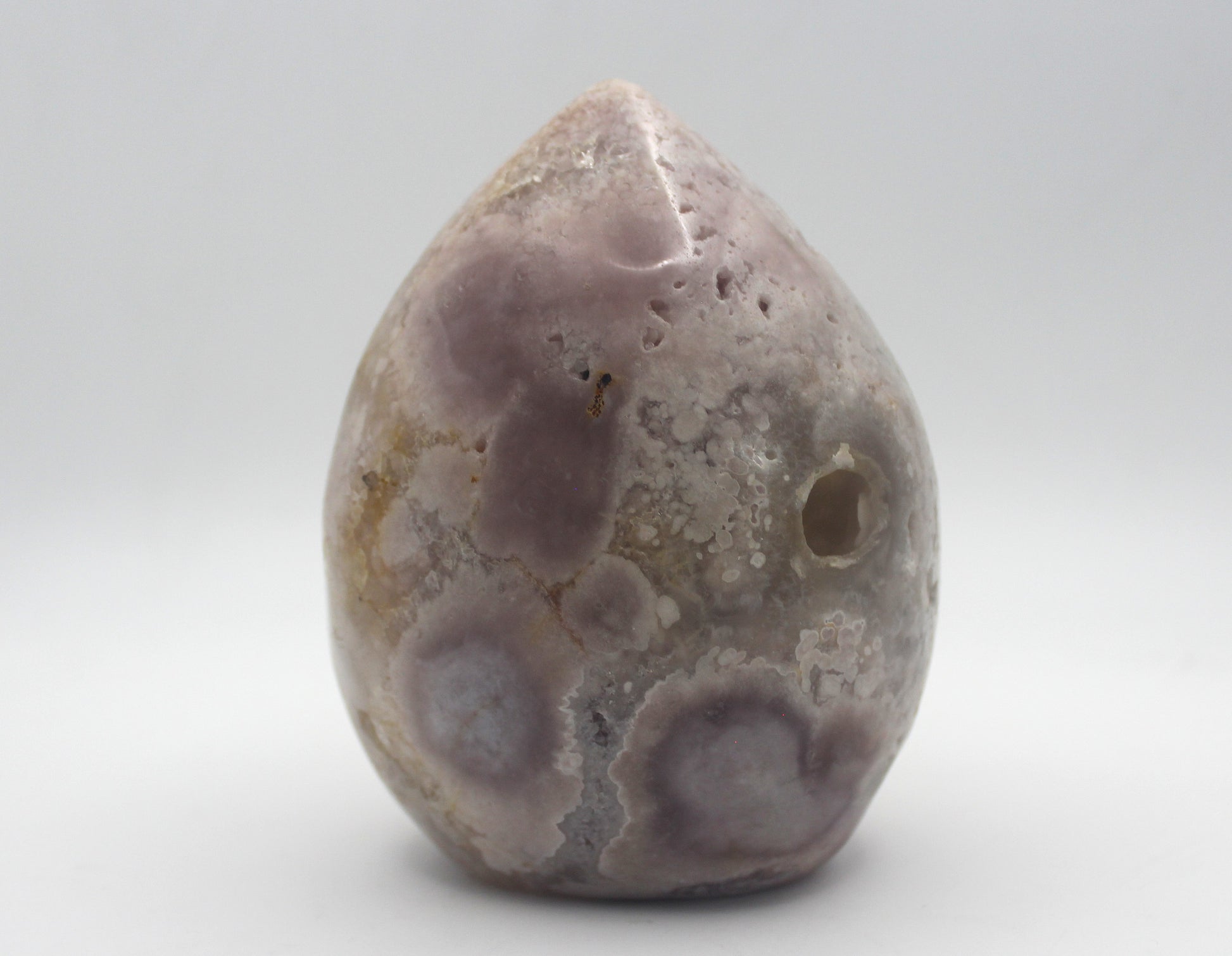 This stunning Pink Amethyst freeform stands approximately 5 inches tall and 3.5 inches wide at its center, radiating soft, nurturing energy through every curve and natural pocket. Its gentle pink and lavender tones blend with unique druzy textures and circular formations, making it an eye-catching display piece and a powerful emotional healer.