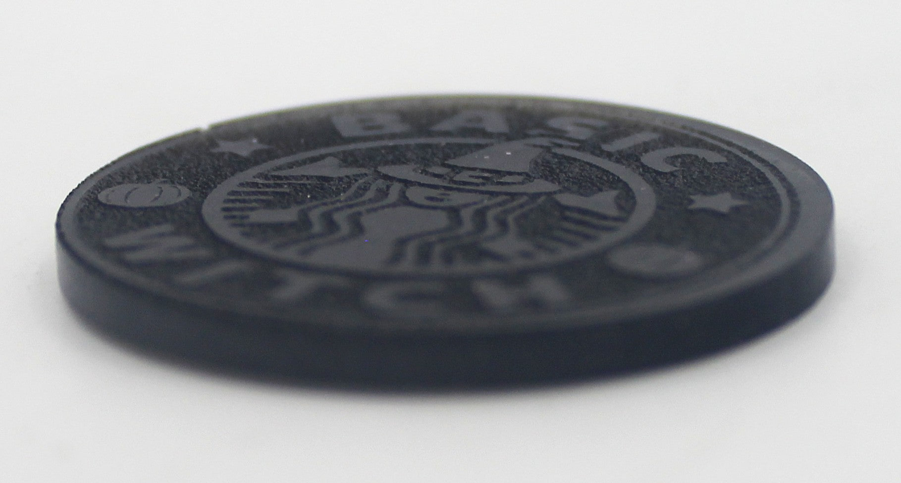 Engraved with “Basic Witch” and magical detailing