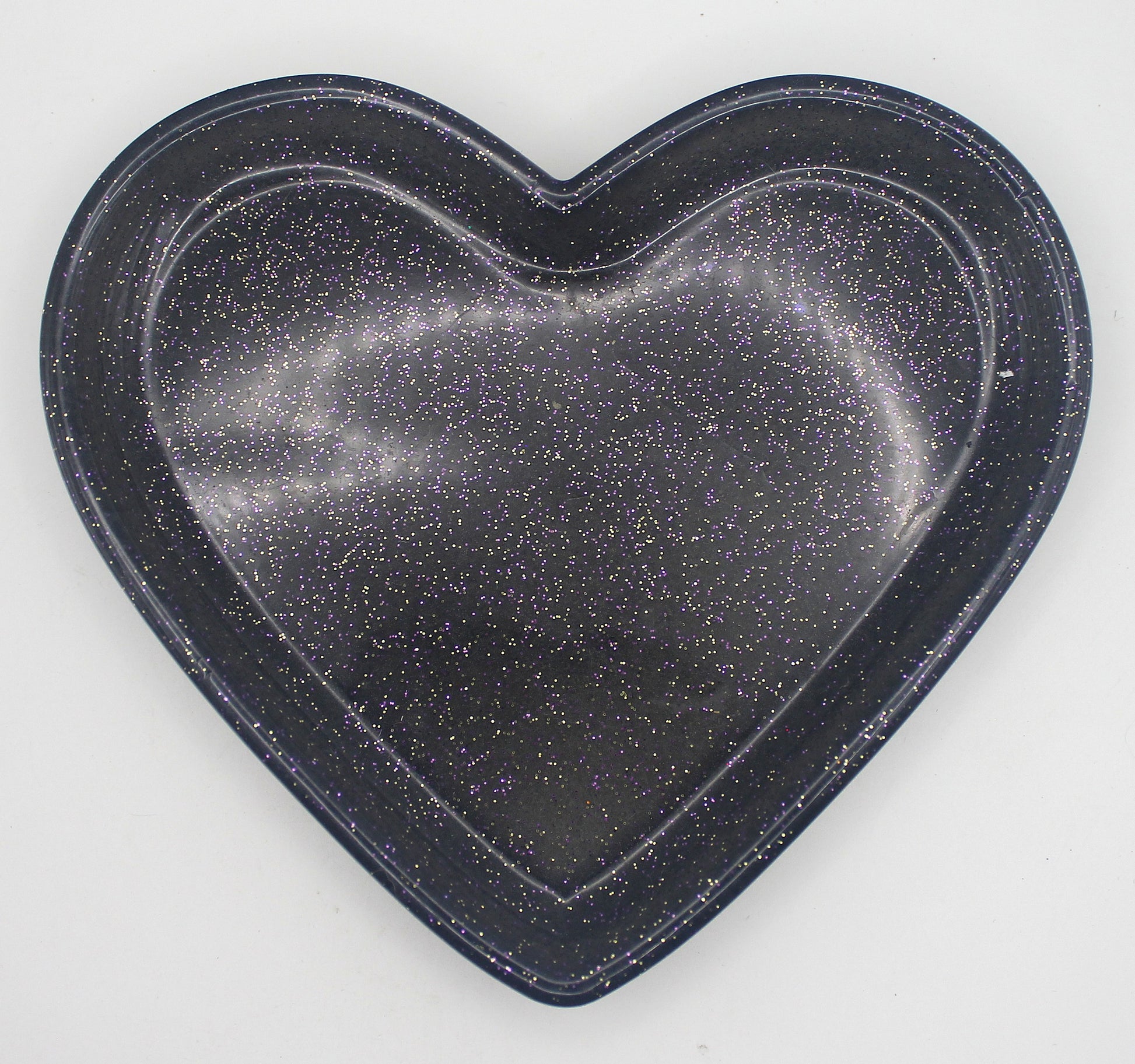Add a touch of sparkle and sweetness to your sacred space with this handcrafted Resin Heart Trinket Tray. Each piece is poured with shimmering resin that catches the light beautifully, creating a dreamy, star-dusted finish.