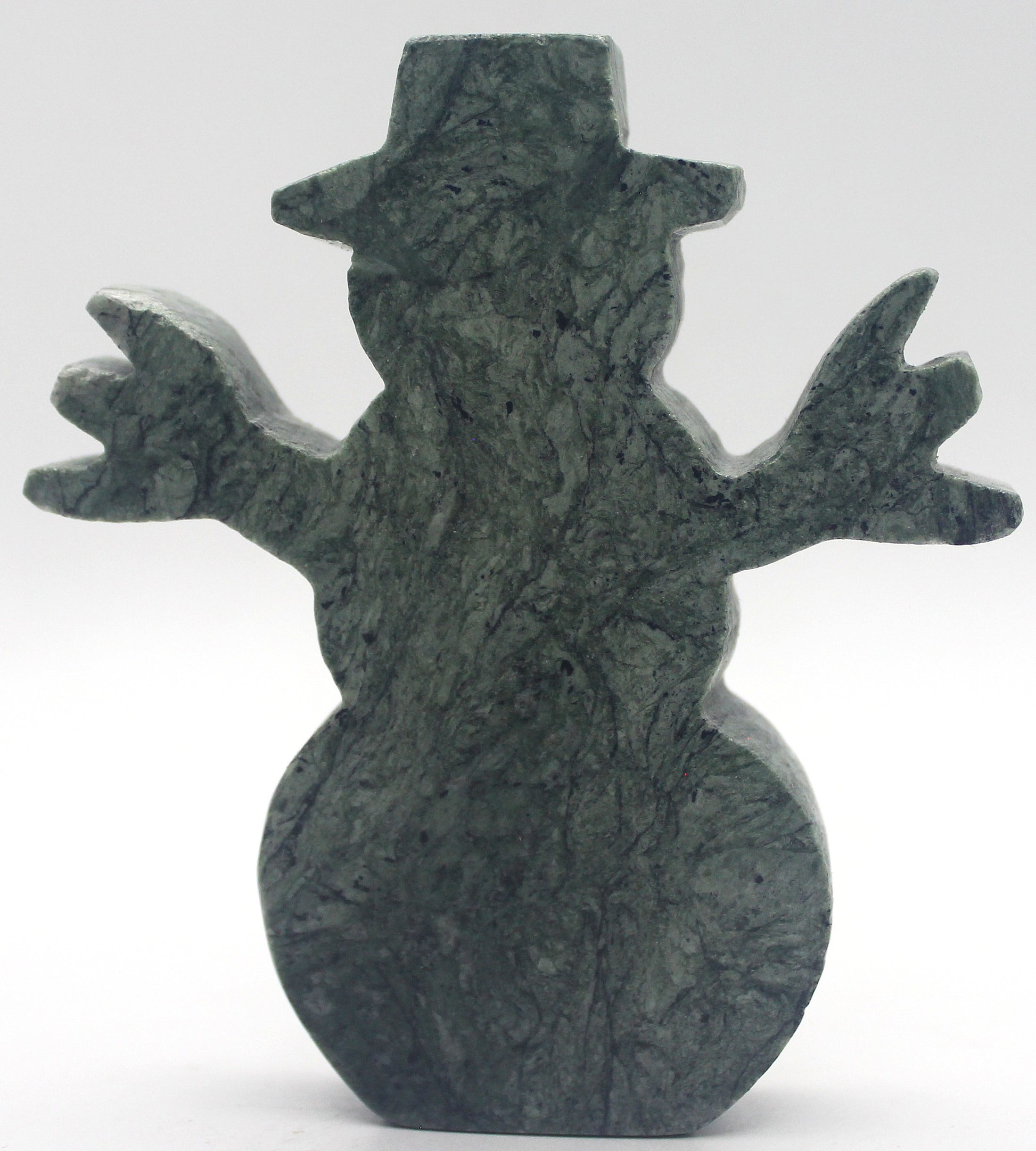 A charming carved stone snowman perfect for winter décor, year-round symbolism, or as a unique gift for collectors. Each snowman features detailed shaping, raised arms, and a top hat, showcasing the natural texture and color patterns of the stone.